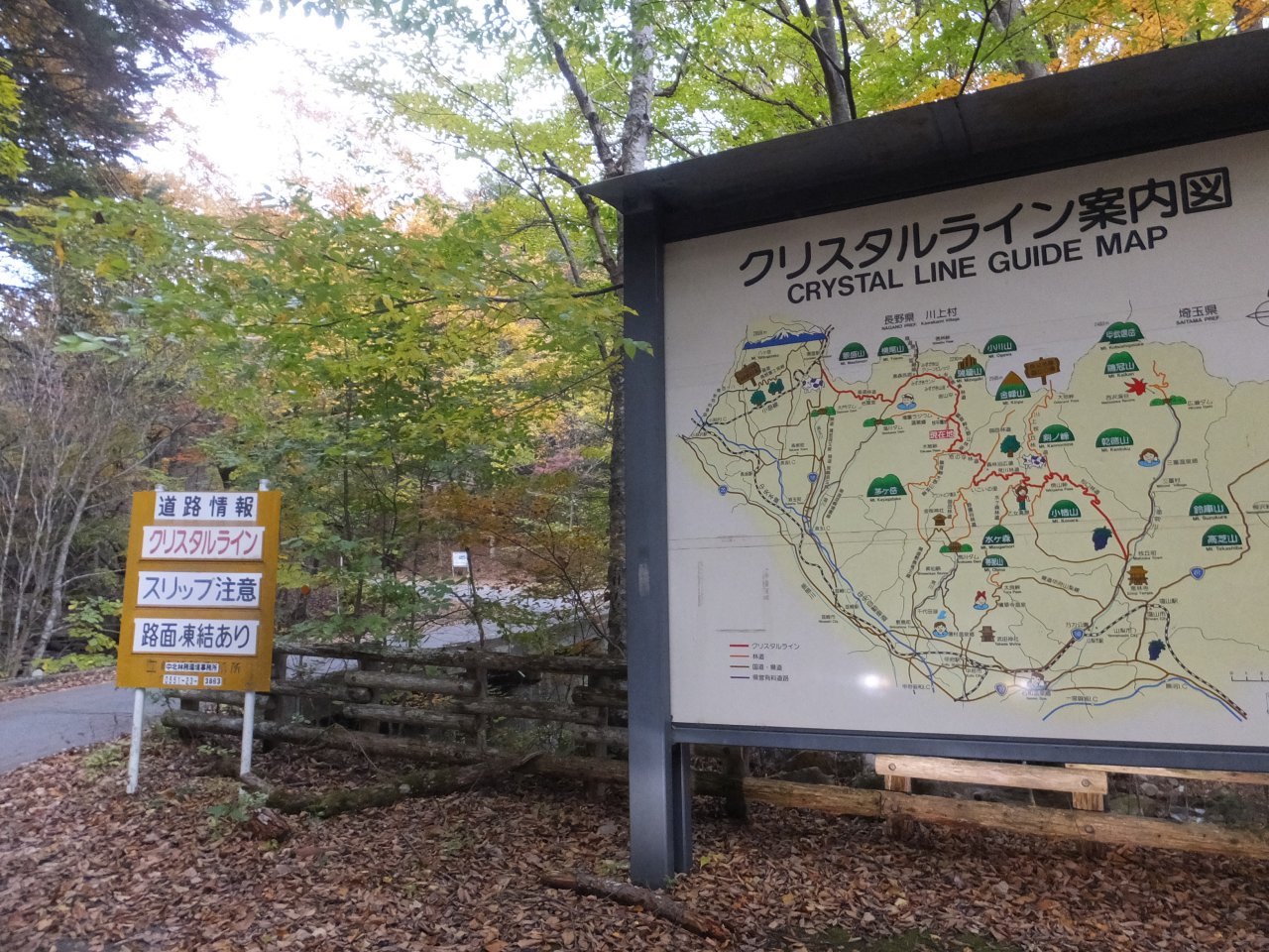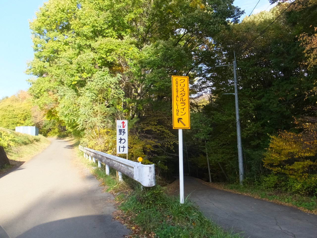 離合することも厳しい道を進んでいくと途中、クリスタルラインの説明看板が。
