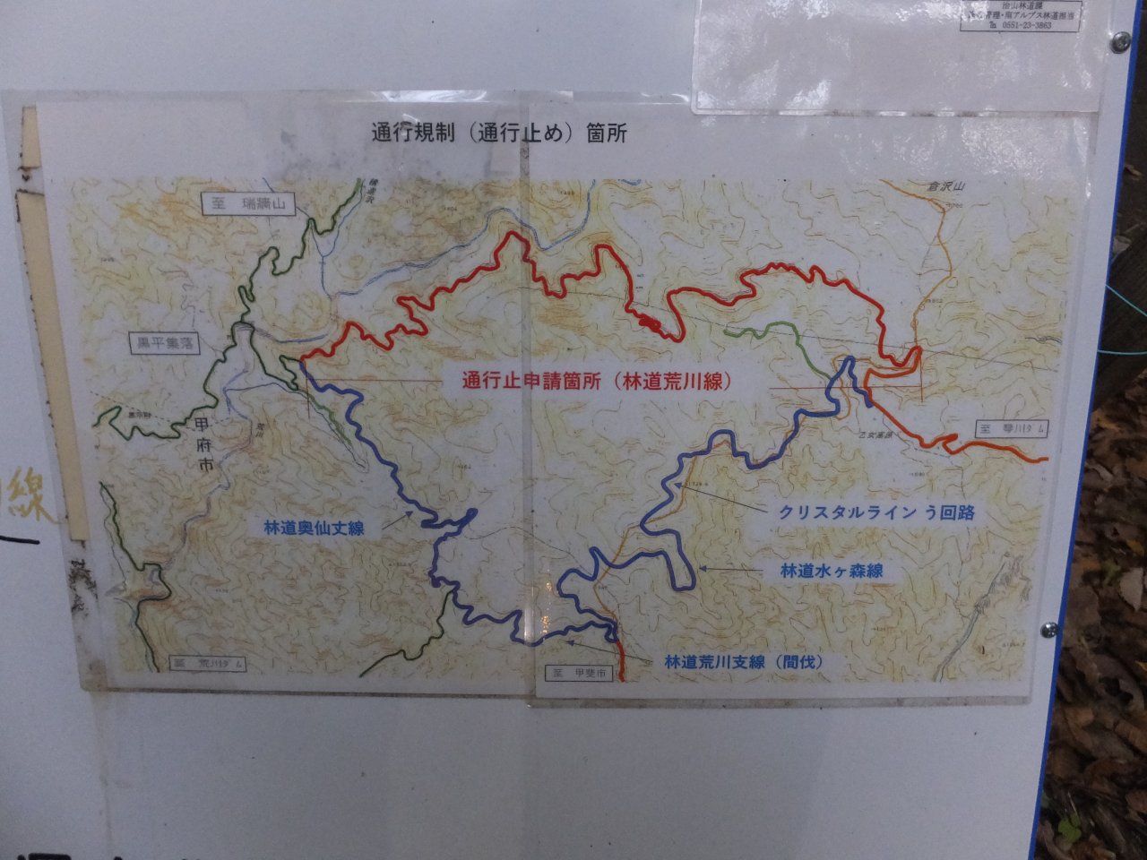 帰宅してからじっくり見てみたら、やっと理解できたけど、通行止めの看板があった場所は、地図にはなく「至 瑞穗山」の先。