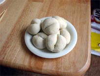 「カスピ海のヨーグルト入りのパンはとっても美味しいらしいよ」 と言う情報聞きつけ、パン好きのおいらとしてこれは是非作らねば! というわけでヨーグルトパンを作ってみた。 ※カスピ海のヨーグルトについてはこちら カスピくん とりあえず、パンのレシピは簡単そうなのをネットで入手。 生地の段階でヨーグルトを混ぜればいいんだなぁと安易な考えで パン作りスタート! (この安易な考えが後で後悔することに・・・) 1.材料を一通りボールに入れて、混ぜる。 2.ある程度混ざってきたところで手で練ってみる。 パン生地が手にくっつきまくりちょっと焦る・・・ 3.べとべとしながらもがんばってこねる。 途中バターを入れたりしながらこねる。 なんとなくパン生地っぽくなってきた(^^) 4.なんとかできあがったパン生地はこーんな感じ 一次発酵に備えボールの周りにはバターをたっぷり塗る。 5.発砲スチロールの箱にボールを置いてそこにお湯を張って、 簡易パン発酵マシンを作る! その中にパン生地を入れて約30分くらいかけて発酵作業。 ・ ・ ・ ・ 30分後 発酵してるハズのパンを見てぷちショック! 周りに塗ったバターが多かったせいか、 なんだかバター汁でじゃぶじゃぶになってる( ̄□ ̄;) しかも膨らんだと言うよりは、横に伸びたってかんじ・・・ でもとりあえず発酵前よりは大きくなってるから良いことにする。 6.一次発酵の終わった生地はガス抜きをします。 麺棒を使ってゴロゴロして空気を抜きます。 しかーし。 小麦粉を振ったのにもかかわらず麺棒にパン生地がくっつきまくり! バターでじゃぶじゃぶになっていたせいかな? あんまりやると生地がどんどん小さくなっていくので程々にする。 7.さぁここでいよいよ登場!の「カスピ海のヨーグルト」を注入! パン生地半分にカスピ海のヨーグルト適量を混ぜてみる。 いちだんとべとべとになったけど気にしない。 よく混ぜる。。 8.小さくちぎってパンの形にする 今回はカスピパンとシナモンパンを作成! 9.パン生地を少し休ませてから2次発酵をする。 またまた約30分発酵マシンの中に入れる ・ ・ ・ ・ 30分後 こんどは良い感じに膨らみました(^^) カスピパンがやけに大きくなっててちょっとビビル。 10.さぁオーブンに入れて焼き焼き開始! 180度〜200度くらいで約15分焼きます。 ・ ・ ・ 6分経過 まだ6分しか経っていないのに、やけに良い焼き色になってきた。 これ以上焼くと焦げそう・・・ ちょっと取り出して焼け具合を見てみる。 中までこんがり・・焼けてる・・・?? うーん15分のハズが6分で焼けてしまった・・・(^_^; 温度は180度だったんのになぁ。 ちょっと早いけど焼けてるので良いことにする。 お皿に並べて完成!! うーん、とっても美味しそう! 手前がシナモンロール(レーズン入り) 奥の二つがカスピパンです(^^) ・・・で肝心の味の方は・・・ なんか表面がクッキーみたい。 なかはしっとりでなく、もっさり・・・ ・ ・ ・ ・