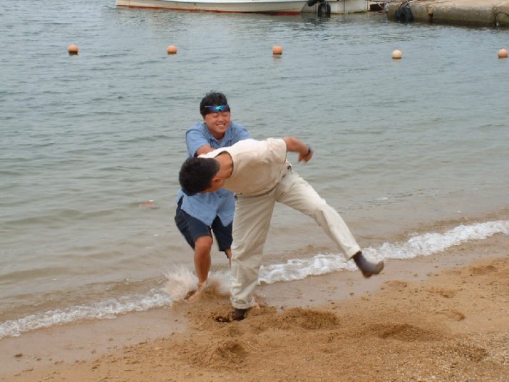お腹いっぱいでの余興。サスケさんの勝ち |