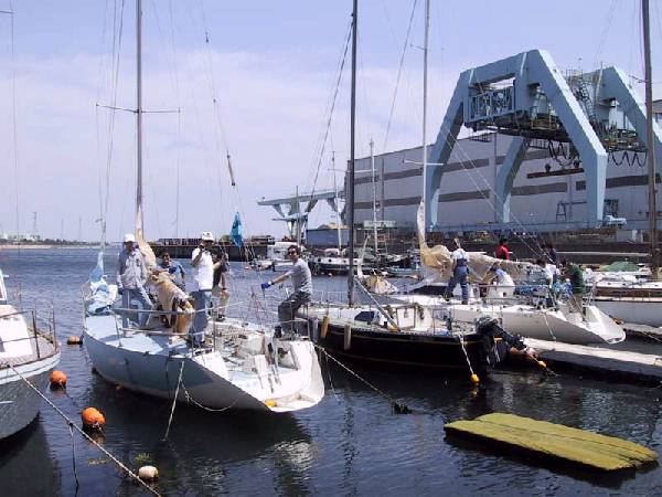 ヘルムはまだセールがシバーしており、トリムが全くできていない状態の為、簡単に抜くことができた。目指すは東播磨港導入浮標のNo.2。湾の外にでるとかなり大きな波があるも、平均6.0knotsで快走。全員カッパを持たずに乗ったので波しぶきでびしょ濡れの状態であるが、天気も良く快適快適。ヘルムは? いまだセールトリムができない状態と見受けられ、はるか下、後方で奮闘中。約1時間、結局4タックでマークに到着。その後ヘルムさんを待つ為、もう一回大回りでマークを回る。今日はここまで。