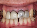 - 差し歯の色は白ではあるが、隣在歯の色とマッチしていない。
