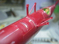 窓の部分は、透明パーツのランナーから削り出しました。パーツの合いを見ながら削っていっただけなんですが、意外にきっちりできました。