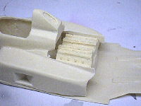 LC88は後部カウリングがありません。エンジンが丸見えになっています。カーモデルとしては見せ場になるところですが、このキットではなんか足を引っ張りそうでかなりイヤです(笑)。