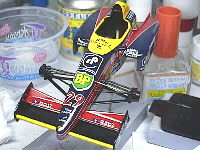 時間的に次のクリアは仕上げのクリアとなるのでデカールを貼ってしまいました。この状態で乾燥させて、最後に失敗しないようにクリアを吹ければボディは完成です。