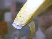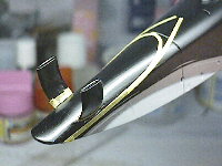 実車の写真などを参考に、ノーズの先の塗り分けラインをマスキングしています。