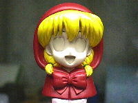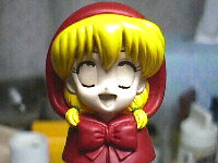 目の塗装に入ります。例によって、私は睫毛から描いていきます。目のモールドに沿ってこげ茶色を塗りました。
