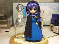 口はエナメルです。赤にちょっと白を混ぜた色です。口のまわりをうすめ液を染み込ませたティッシュで拭いて塗り分けています。