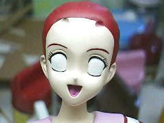 マスキングを繰り返しながら、アンダーシャツのピンク、ユニホームの赤いライン、ユニホームのピンク、髪の毛の赤の順に次々とエアブラシで塗装していきました。