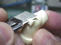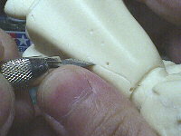 パーティングラインの処理です。多少段差のあるところはカッターでV字の溝を付けていきます。