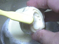 歯ブラシなどを使って丁寧に洗いましょう。これでクリーナーを完全に洗い流してしまいます。