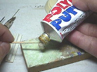パーツの段差や穴を埋めていきます。まずはポリパテの出番です。使う分量をかまぼこの板などに出します。