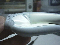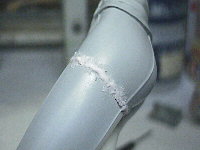 足を接着し、継ぎ目を瞬着パテで埋めていきます。瞬着パテは数分で固まるパテで、堅すぎず崩れずと結構便利なパテです。