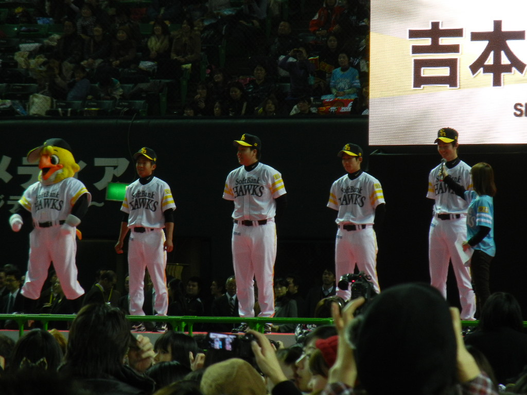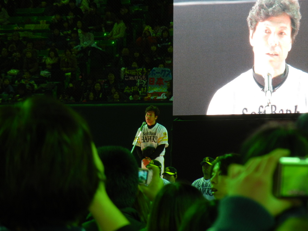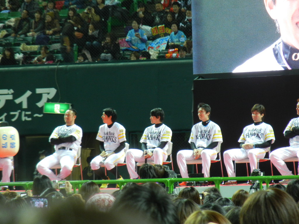 今朝は5時過ぎに相方が目覚まし時計を鳴らした。7時頃に家を出る予定だったからだ。義父が入院し、月曜日に手術なので今日から火曜日まで実家に行くのであった。自分で鳴らしておきながら、すぐに起きないから困ったものだ。 7時にこちらも起きたのだが、その時にはまだいたな。まあ、いつものことか。7時15分頃には家を出ることができたかな。 バスはスムーズだったらしく、思ったよりも博多駅に着いたようだ。ただ、飛行機が機材の到着遅れによって30分出発が遅れることになったらしい。せっかく空港にも早めに着いたのにあまり意味はなかったようだ。 10時頃、子どもと自分も家を出た。バスでまずは天神に向かった。バスセンターから臨時バスに乗るつもりだったのだが、ホークスの優勝パレードで道路が閉鎖されたため、一時運行中止になっていた。仕方ないので地下鉄で唐人町まで行った。そこから15分くらい歩いてヤフードームに着いた。そう、子どもとホークスファン感謝の集いに行ったのだ。 11時頃だが、すでに多くの人がいた。サイン会は店員が2000名だったので余裕かと思っていたら、これが一番に締切になっていたな。ショックだった。この時点では選手撮影会が少し余裕があったのだが、並んでしまうと何も見ることができないと思い、並ぶのに断念した。 子供がおなかが空いたというのでホークスタウンモールに戻り、マクドナルドで昼飯。子供は相変わらず、ポテトとナゲットだけどね。 トイザラスでポケモン歴代パッケージの人気投票をしてからヤフードームに戻った。内野グランドのステージイベントに的を絞ったのだが、後の方しかダメだった。 12時半過ぎに選手が入場し、秋山監督のあいさつからスタート。 新人選手の紹介もあった。白根はもう少し面白いことをいうかと思ったのだが、さすがに今日はまじめな回答だったな。 川崎や松中、松田に多村、杉内や和田、福田、明石、細川、山崎などのトークショーまでは見た。 大場が随分と滑っていたな。バカでも元木や宮本は言葉がスラスラと出てきたものだが、大場は言葉が出てこないし、出てきても滑るような内容しかないし、苦しかったな。山田のように15勝を目標にすると言ってしまえばいいのに躊躇したことで結果的に背番号の17勝を目標にすると言わされたのが情けない。 子供が人混みに酔ったのか、帰りたいと愚痴を言い出したので15時過ぎに引き上げた。 帰りは直行バスに乗って天神に向かった。天神は北天神で降ろされるのね。それで2人で330円か、考えてしまうな。さすがに唐人町まで歩くようなことはないので便利ではあったけどね。 大丸でソフトクリームを食べてから再度バスに乗り帰宅した。家に着いたのは16時半過ぎだったな。 |