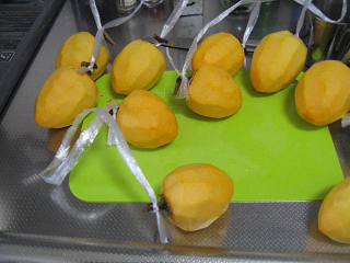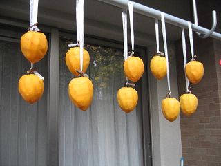 『暁のヨナ』の8話。ヨナとハクがユンを新たに仲間に加えて旅に出た。ユンは家事全般が得意だから、必要だよなぁ。ハクには家事は向いていないし、ヨナもてんでダメだしね。イクスが一人で生活できるのか不安ではあるが、それが神託だったのだろうな。 『大図書館の羊飼い』の8話。佳奈がビーチでの演劇の失敗から立ち直る。京太郎は無自覚であれをやっているのだろうか。それはそれで質が悪いぞ。小太刀は何がしたいのだろうか。京太郎に佳奈の居場所を伝えたりしてさ。 『SHIROBAKO』の8話。絵麻は杉江の心配りと井口のフォローで凝り固まった重圧から解放されたようだ。単に遅くまでいるだけだった感じだったけど、今回はやる気も仕事内容も濃い残業になったようだな。 宮森姉はやはり、地元で苦しいことがあったのね。地元銀行で中堅位になってしまって、しかも、強く出られない性格を見事に突かれているようだ。シガラミに疲れて出てきたのね。でも、居酒屋で妹たちの話を聞いて自分ももう一度やろうと思えたようだ。良かったなぁ。 『トリニティセブン』の8話。アラタは真面目に魔導を勉強したのだな。リリスは先生役を申し出るのにも勇気を奮うのか。彼女は教師なのだから、普通に言えばいいだけのはずなのだが・・・。そこら辺が「色欲」がテーマとなる彼女らしいところか。 アキオではないが、ミラはずいぶんと変わってきたんじゃないかね。言葉ではアラタのことを「不浄」呼ばわりしているが、深夜に彼の部屋をアキオ付とは言え、寝間着姿で訪問したりするのだから。 消滅したはずの王立リベル学園に飛んだアラタ達。でも、飛ぶ寸前に邪魔が入ったためにまともに着いたのはアラタとミラだけか。ソラはアラタの魔導書だから一緒にいるのは当然だろから。リリスとアキオは一緒に別の場所に着いたのかな。 アラタの前に現れたのは聖? ではないらしい。あの消え方を見ると彼女は魔導で作られていたのかな。単なる幻影なのか、それとも別の何か、例えば、ソラの様に魔導書だったりするのだろうか。 今朝はいつもと同じ時間に起きた。皮膚科に行かなければならなかったからね。8時には病院に着いたのだが、それでも10番目だった。前回も似たような順番だったけど、今日は時間がかかったな。 午前中、相方と買い物へ。灯油を1缶買ってからスーパーに行った。相方が渋柿から干し柿を自作したらと言うので、500円の渋柿を購入した。あたご柿で10個かと思っていたら11個入っていたわ。 昼食後、干し柿を作り出した。と言っても、今日は干すまでだけどね。 クックパッドなどを参考にして作業開始。 1.ビニール紐を60pの長さに6本切り出した。 2.柿のヘタ側の肩口までの皮をむいた。 3.クックパッドなどでは、その後、先端に向けてピーラーで皮をむくというのが多いのだが、自分は包丁でむいて行った。 4.カットしたビニール紐をヘタに結び付ける。1本の紐の両端に柿をつける。 ![]() 5.鍋で水を煮立たせ、30秒間、柿を漬けた。一応、熱殺菌効果を狙ったものね。 実際、11個をやった後、鍋のお湯が薄く紫色になったので、渋か何かが落ちた模様。 ![]() 6.熱殺菌した柿を雨がかかりにくい軒先にある物干し竿にぶら下げた。 この際、柿が重ならないようにぶら下げる紐の位置を変えたりする必要がある。 ![]() まあ、1週間後に渋抜きを促すために手で揉んだりするらしい。それをしなければ、完成までの日数がかかることになるので、その作業の有無で完成日数を調整するのも良いかも知れない。手もみをするとあんぽ柿風で食べられるのは2週間くらいらしい。干し柿のように固くするのには1か月程度かかるようだ。 『ガンダムビルドファイターズトライ』を見た。スガは全国優勝高校の補欠ではなく、優勝メンバーの一人だったのね。どうして、転校したのか気になるぞ。補欠だと、そこでは出場できないから、出場機会を求めて転校するというのはよくあるパターンだったのになぁ。あだ名が「スレッガー」とはなぁ。まあ、彼を意識したキャラだというのは分かっていたけど、あだ名までそうするとは思わなかったな。扱うガンプラもGアーマーとか出来すぎだろうに。って、ガンダムと合体する気はない作りなのかな。腕が出てきたもの。そして、セカイが見るに、彼は体術も使うようだ。だから、彼はセカイに「俺に次元覇王流拳法」と言ったのかね。 ギャン子がそのチームに負けた。圧倒的な差だったな。キャプテンの百式ベースのガンプラのメガ粒子砲でライジングガンダムが瞬殺だったしなぁ。ギャン子のR・ギャギャもそのマシンに最後は両断されてしまった。意外にヨミも強かったな。さすがに前回の地方大会優勝チームだけのことはあるか。 次回の決勝戦でチームトライファイターズは苦戦しそうだ。 『サイコパス2』の8話。霜月はついに東金の尻尾と言うか、カムイの謎に近づいたな。でも、東金財団に近づきすぎたか。それと、シビュラの用意した罠(今